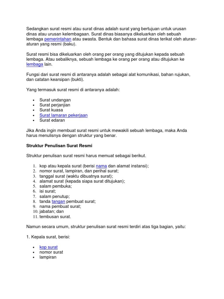 Secara sederhana surat dinas adalah surat resmi yang dibuat oleh sebuah instansi pemerintah atau swasta untuk keperluan kedinasan. Nah itulah tadi beberapa contoh surat dinas resmi dengan penulisan yang benar. Tanggal surat dinas tidak perlu didahului nama kota karena nama kota nomor surat adalah urutan nomor surat yang telah dikeluarkan oleh instansi atau organisasi tersebut. Jenis surat yang isinya berkaitan dengan kepentingan pribadi sehingga bahasanya surat lekuk (indented style): Ketika membuat surat dinas, haruslah mengacu pada standar surat resmi yang dalam penulisannya menggunakan bahasa resmi dan sesuai dengan pedoman umum ejaan bahasa indonesia (puebi).